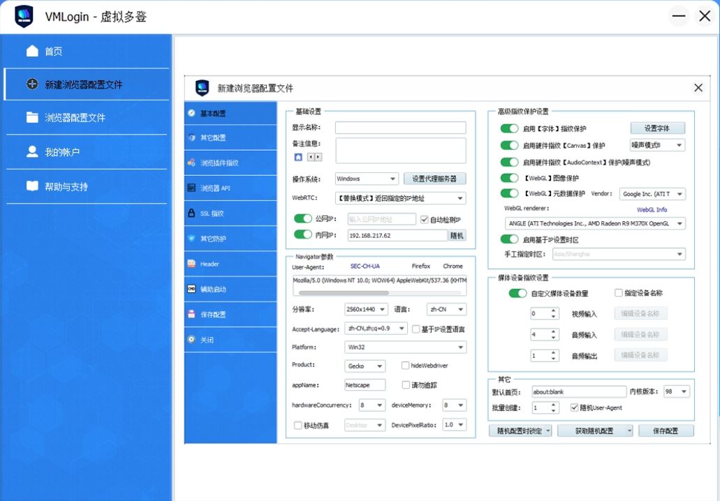 VMLogin的下载呈现出一种仿佛停留在2010年代的风格。用户体验实在难以被称作直观,只因应用程序的主界面涵盖了有关这项技术的益处、使用浏览器的流程以及清理缓存按钮等各类信息,让人感到混乱而不知从何下手、怎样开始,启动后的VMLogin是以固定大小的窗口形式运行的,根本无法全屏显示,因为压根就不存在最大化按钮(在后续体验中,可以利用API功能来最大化窗口,但我很难想象一款2024年软件在最大化这件事上会如此繁琐)。让人诧异的是,倘若点击“最小化”按钮,这个应用竟然会从任务栏中消失不见。,并且默认状态下,VMLogin里的浏览器配置文件居然会泄露你的真实设备指纹,这意味着它的安全性最多也就和你平常使用的浏览器一样,若要利用VMLogin安全地创建多个账户,就需要去调整诸多手动设置,而且VMLogin对比比特浏览器提供的底层指纹设置的可见性和控制较少,对于一些习惯浏览器指纹定制的用户,这无疑是一个不好的消息。