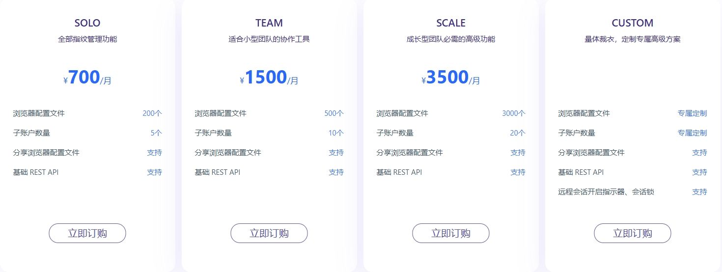 在比特浏览器中的付费计划则是可以根据您的需求进行选择的,而在价格上比特浏览器性价比也远比VMlogin更合适,同样是200个配置文件,在比特浏览器你仅需支付15美元,甚至不到VMlogin的一半,只需更少的费用,享受更好的服务,相信你知道该选择哪款产品,对了,如果你需要更多的窗口也可以联系比特浏览器团队获取更专业的服务,在这篇文章中我们对比了大部分指纹浏览器的价格,点击访问进一步了解比特浏览器的价格优势:(五大最佳防检测浏览器全方位分析)。